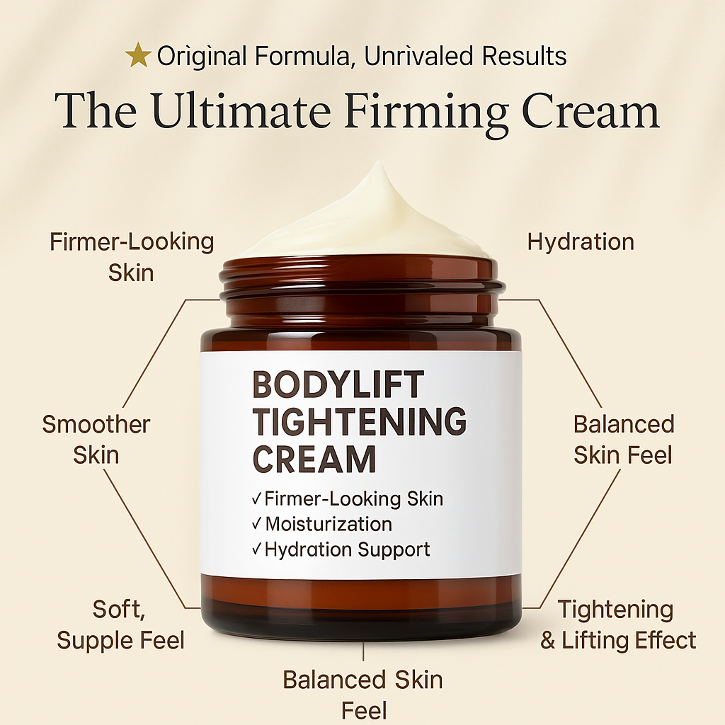 BodyLift Tightening Cream is crafted with gentle, plant-based ingredients to nourish and soften your skin. Its lightweight formula absorbs effortlessly and is suitable for all skin types, helping you feel confident and cared for with every application.