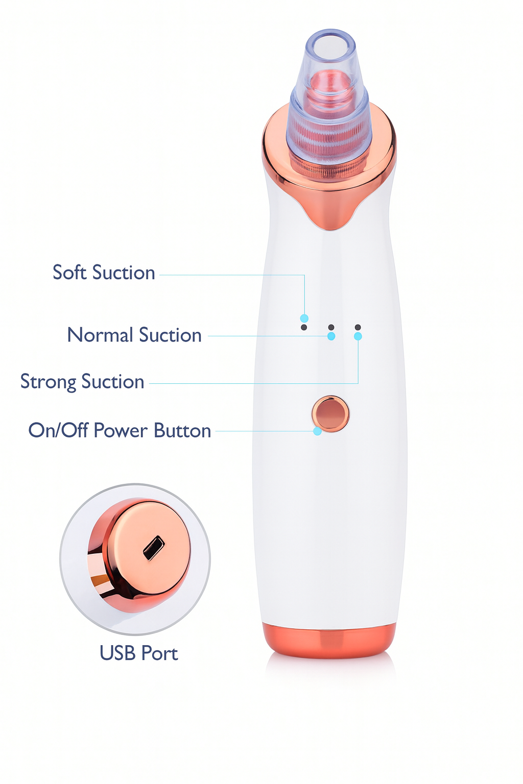 The Velanca SkinVac™ is crafted with precision technology and a safe, skin-friendly design to give you professional-quality pore care at home. Gentle yet powerful, it uses adjustable suction levels and interchangeable heads to adapt to your skin’s unique needs without irritation. Rechargeable and portable, it’s a non-invasive, eco-friendly solution for removing blackheads, unclogging pores, and controlling excess oil—helping you achieve smooth, radiant skin without compromise.